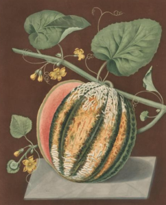 Pomona Britannica: No. 64 – Scarlet Flesh Romana Melon 1812. Source: Cleveland Museum of Art (public domain)