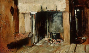Robert Atkinson – A Settler’s Kitchen, Opua Whanga, New Zealand 1886. Source: Auckland Art Gallery via Wikimedia Commons